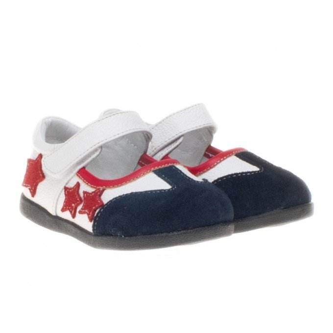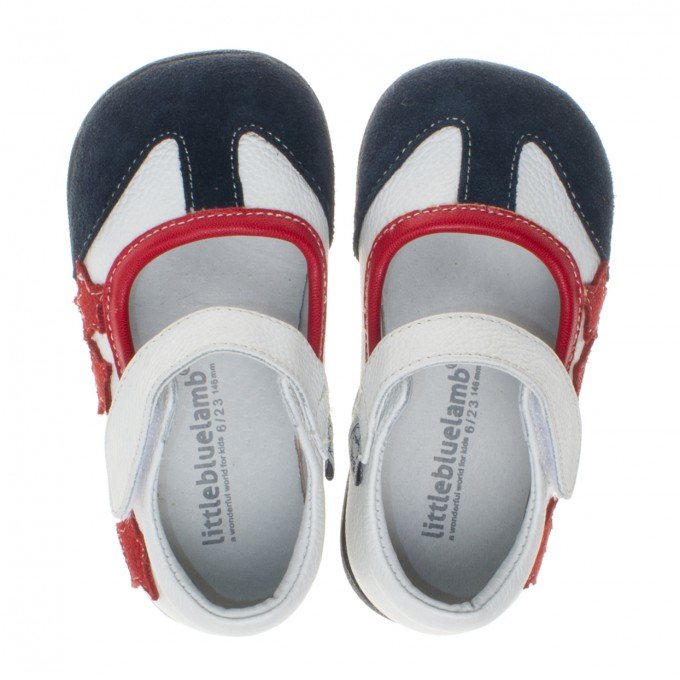 РАСПРОДАЖА! Старая цена: 445 грн.Туфли Little Blue Lamb серии UI. Кожаные туфельки белого цвета с синими замшевыми вставками впереди и красным звездочками на боку. На ножке фиксируются с помощью ремешка на липучке. Великолепно подходят и специально спроектированы для детей от 2х до 4х лет с учетом роста детской стопы. Сделаны из натуральной кожи с надежной подошвой из современного износостойкого материала TPR. Легкие, удобные, дышащие, мягкие внутри.