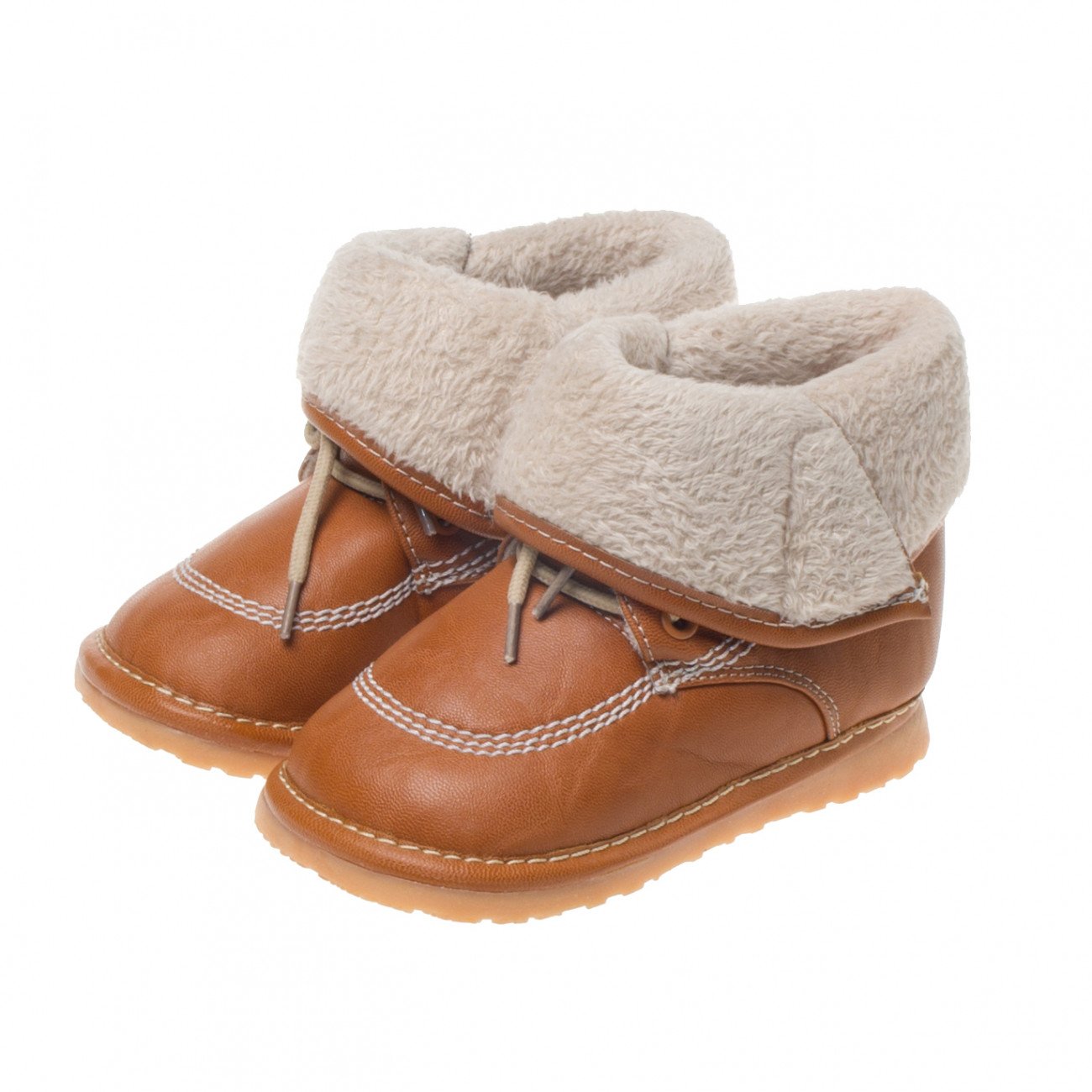 Кремовые сапожки с отворотами и шнуровкой. Внутри утеплены флисом. Великолепно подходят и специально спроектированы для детей от 1 года до 3 лет. Широкие, удобные, износостойкие. Пищалки усиливают интерес детей к ходьбе и помогают практиковаться. При необходимости легко меняются на заглушки.