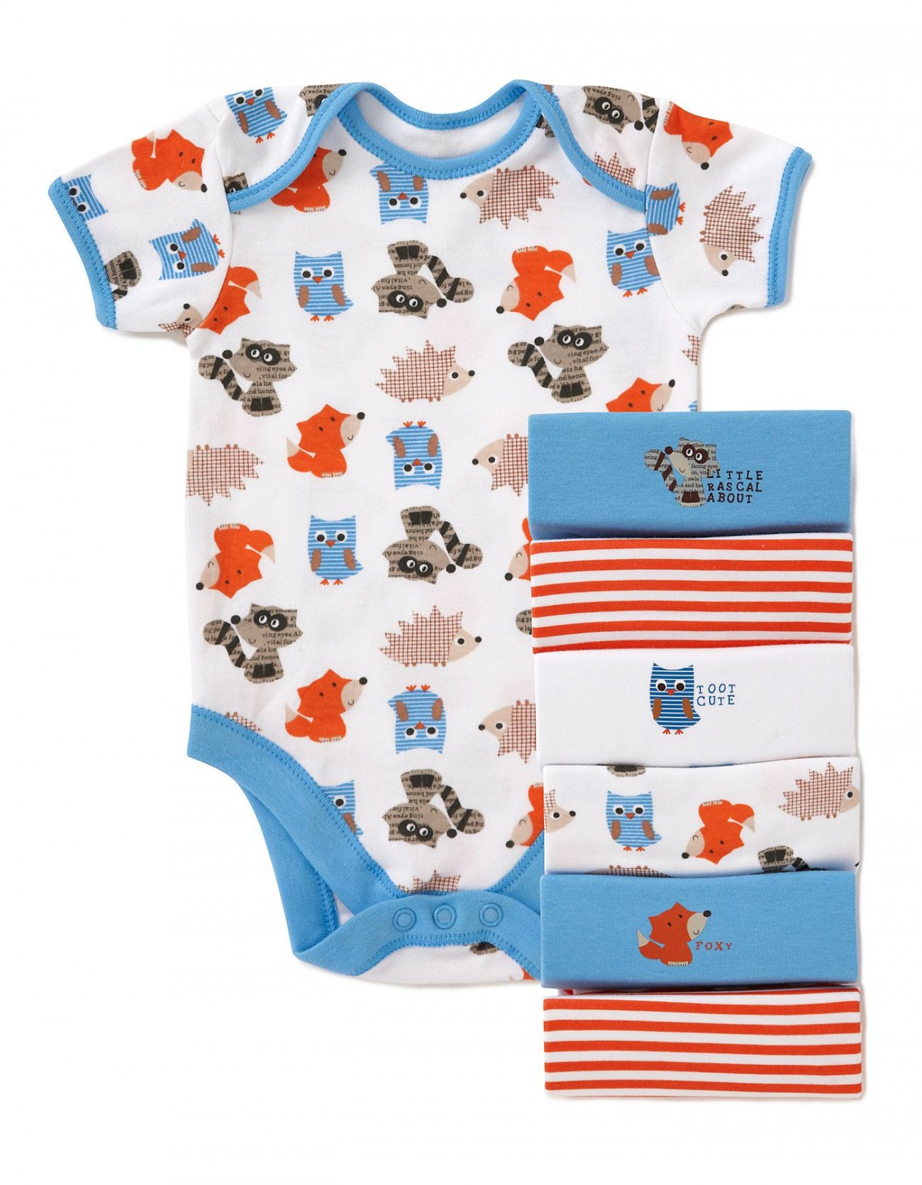 Яркий набор боди с коротким рукавом на 3-х кнопочках "Зоопарк".
