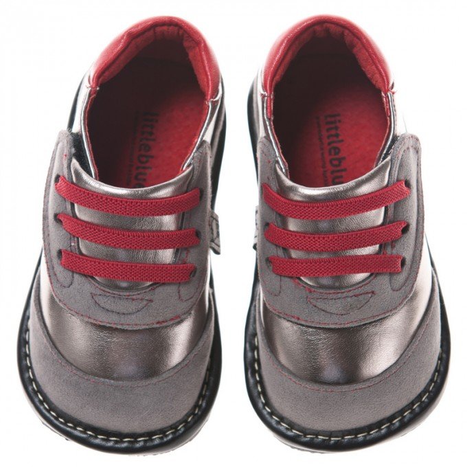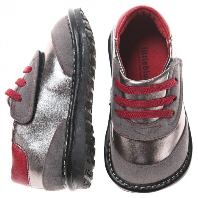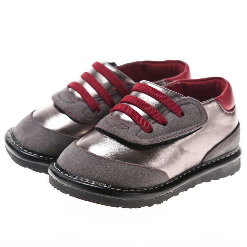 Стильные кроссовочки для маленьких модников. Замшевые вставки серого цвета прекрасно сочетаются с основным цветом металлик в кроссовках. Впереди на широкой липучке выделяются резинки вишневого цвета под имитацию шнуровки. Великолепно подходят и специально спроектированы для детей от 1 года до 3 лет. Широкие, удобные, износостойкие. Пищалки усиливают интерес детей к ходьбе и помогают практиковаться. При необходимости легко меняются на заглушки.