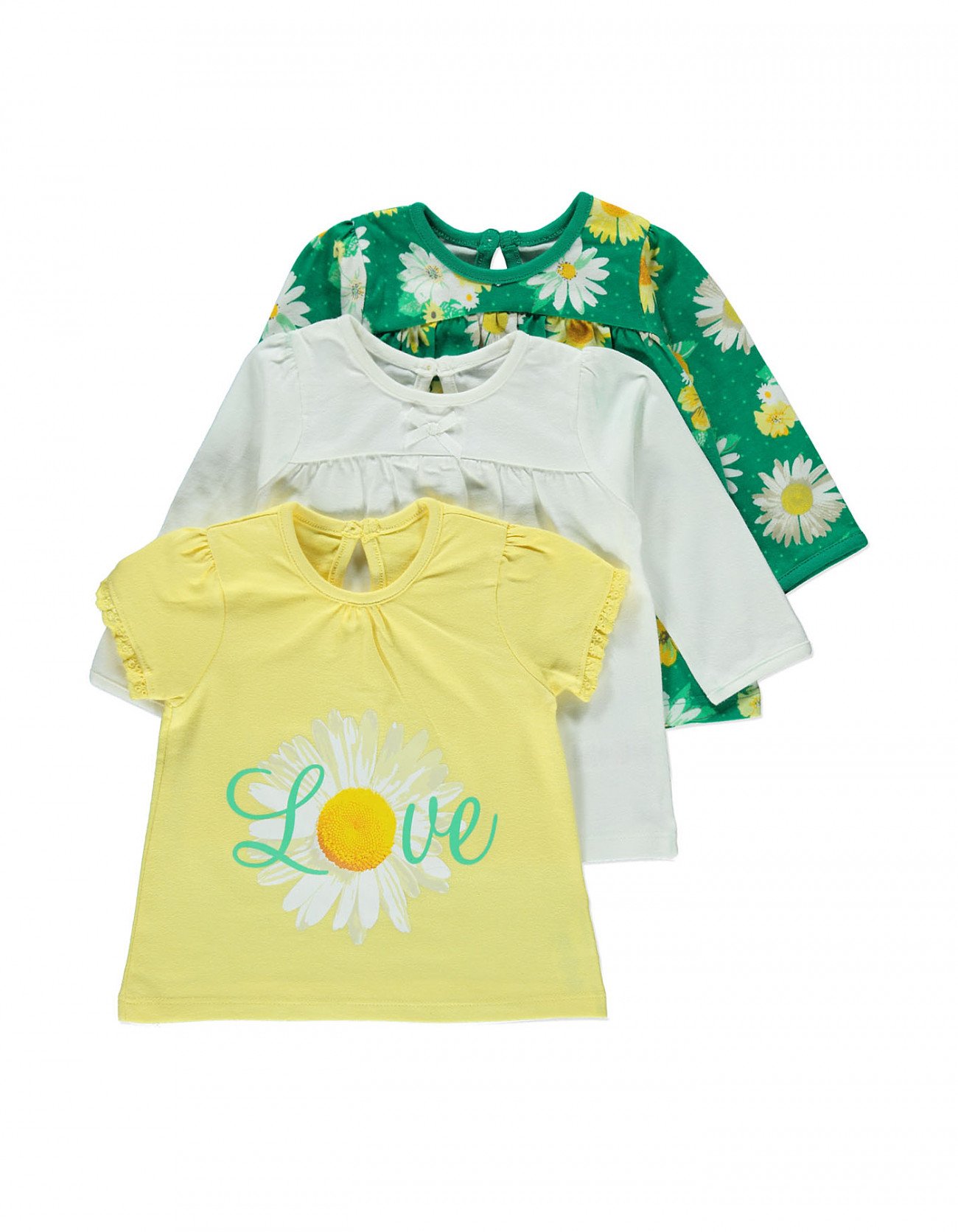 - футболочки ярко-желтого цвета с ромашечкой и надписью;