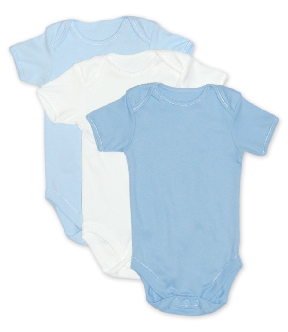 Один бодик - белоснежный, второй - голубой, третий - синий.