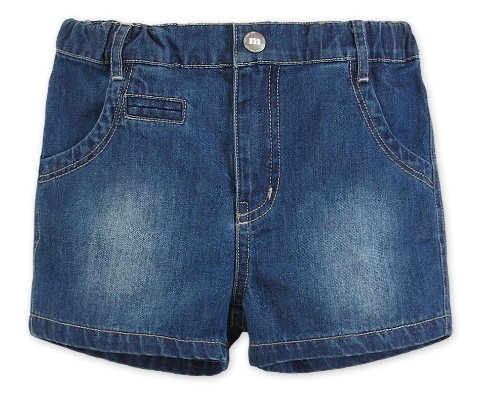 Красивые джинсовые шортики. Ширина в талии регулируется внутри в поясе. Пояс застегивается на кнопочку. Впереди два врезных кармана с двойной строчкой по краю, сзади два накладных. На кармашке нашивка машины.