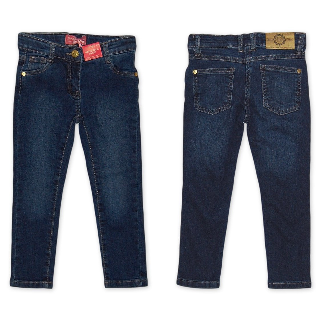 Темно-синие с потертостями по штанинам джинсы для модницы.