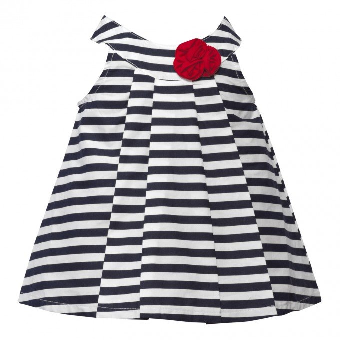 - туники без рукавов на круглой кокетке, которую украшает красная розочка. Туника присборена на кокетке в складки. Сзади застегивается на три пуговицы;