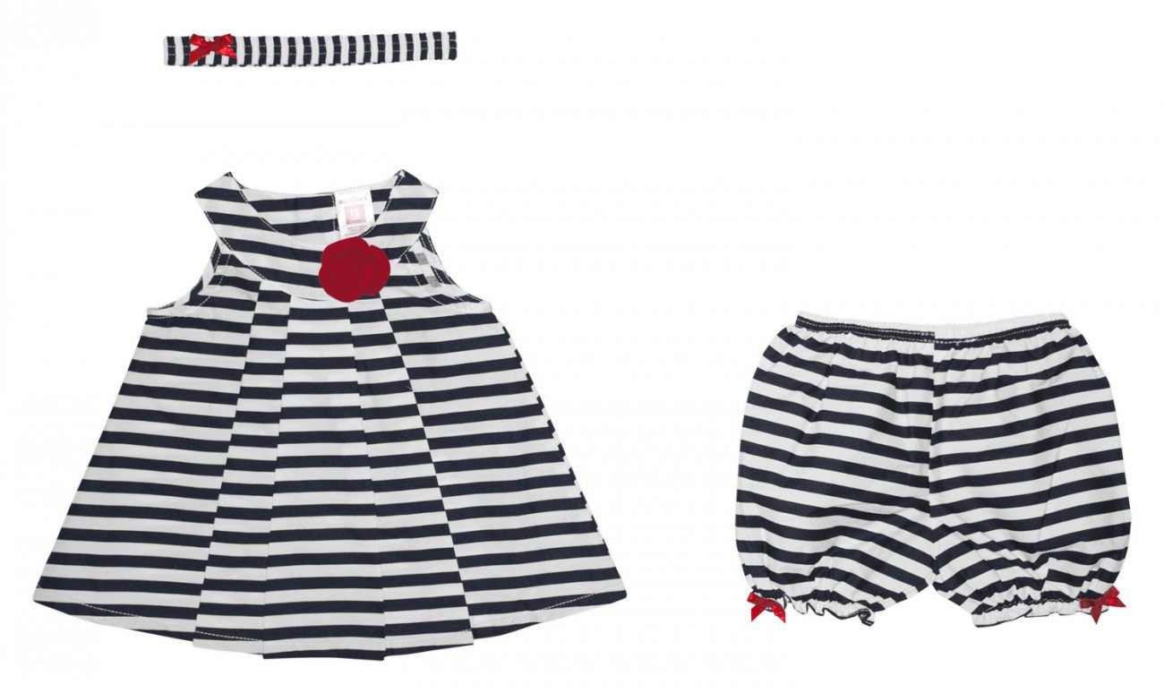 - туники без рукавов на круглой кокетке, которую украшает красная розочка. Туника присборена на кокетке в складки. Сзади застегивается на три пуговицы;