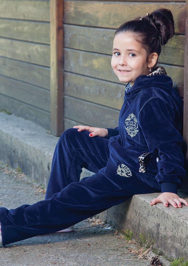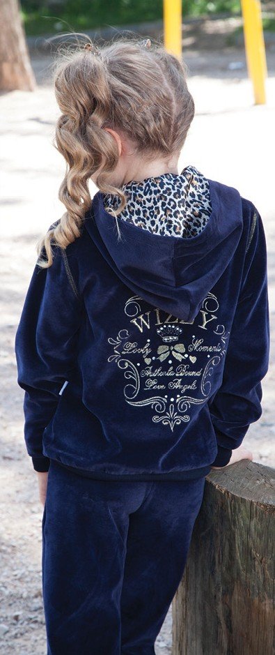 Стильный темно-синий комплект из велюра для девочки.