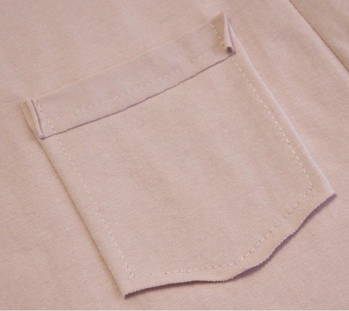 В комплект входит:- свободная туничка красивого пастельно-розового цвета. Впереди снизу с небольшим накладным карманчиком, по краям карман обрезан, без обработки. Туника асимметричного кроя, сзади длиннее чем впереди, к низу чуть расклешенная. На рукавчике небольшие отворотики, край обрезан, без обработки. Горловина с круглым вырезом;