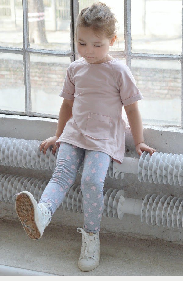 - чудесно дополняют комплект серого цвета лосины в розовых бабочках. В поясе лосины на резиночке.
