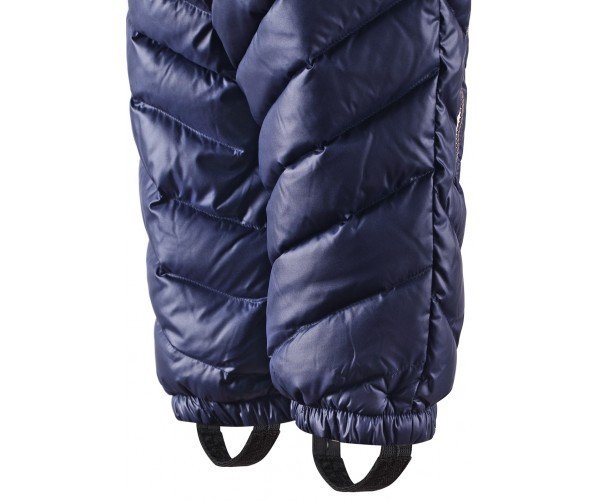 Зимний слитный пуховой комбинезон Reima синего цвета унисекс.Удобная и продуманная модель, в которой ребенку будет комфортно как в коляске, так и топая самостоятельно. Оригинальный дизайн, качественное исполнение, внимание к мелочам.