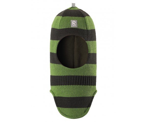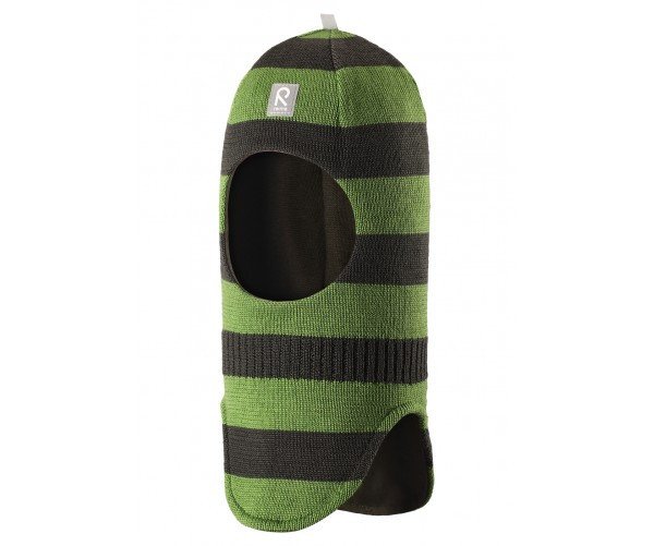 Шапка-шлем в полоску темно-зеленого с зеленым цвета, верх из мериносовой шерсти внутри на мягкой хлопковой подкладке. Теплая и очень удобная, хорошо сохранит тепло и защитит от холода, полностью закрывает шею. Благодаря эластичной вязке удобно одевать через голову. Для дополнительной защиты ушек от холода и ветра есть ветронепроницаемые вставки в области ушей. Впереди светоотражающий элемент для лучшей заметности ребенка в темное время суток.