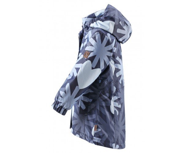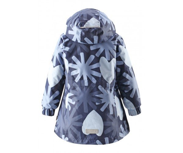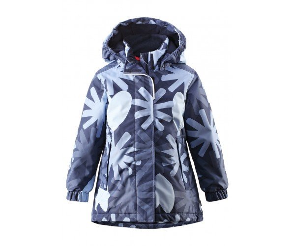 Зимняя курточка Reima темно-синяя с серыми сердечками и темно-серыми снежинками для девочки.Удобная и продуманная модель зимней курточки. Оригинальный дизайн, качественное исполнение, внимание к мелочам.