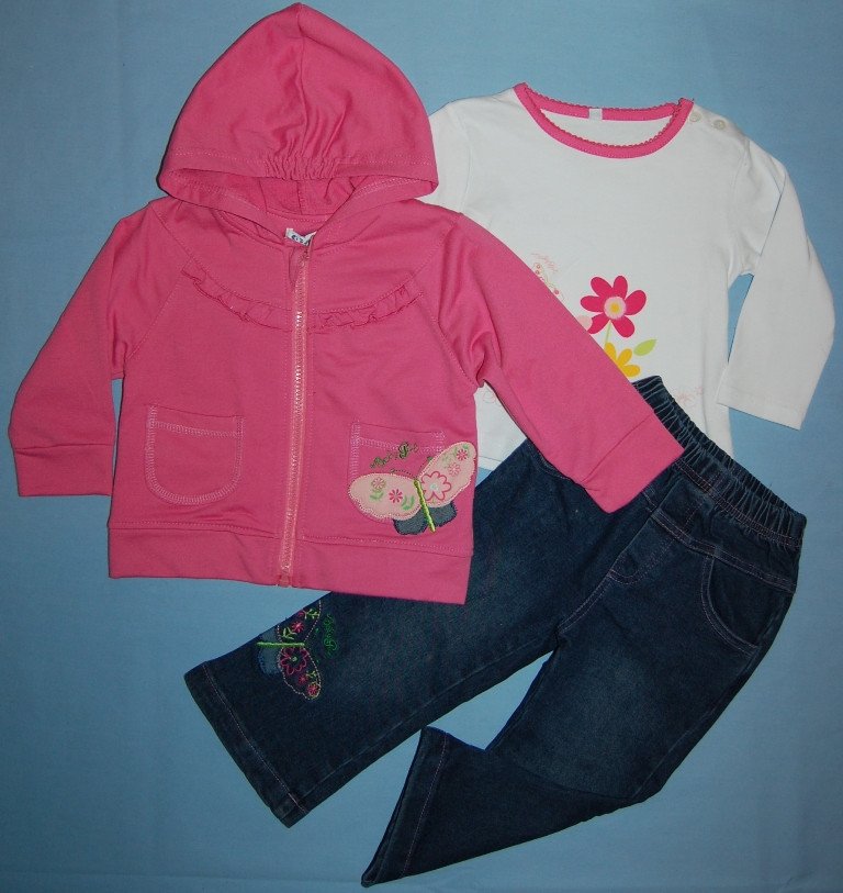 В состав входит реглан с длинным рукавом на молнии, кофточка с длинным рукавом и джинсики